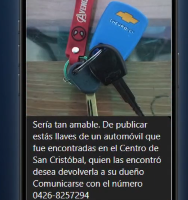 En el centro de San Cristóbal, uno de nuestros usuarios encontró las llaves de un vehículo y está buscando al dueño para poder entregárselas.