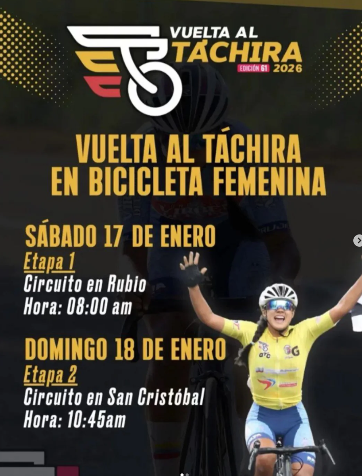 La vuelta al Táchira femenina se correrá el 17 y 18 de enero en Rubio y San Cristóbal, así lo dio a conocer la Asociación Tachirense de Ciclismo.
