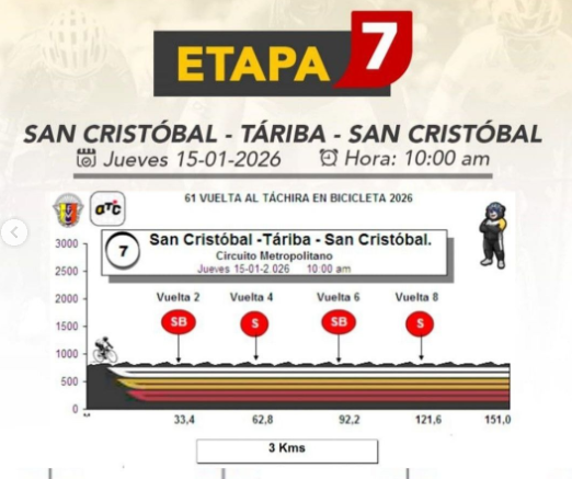Hoy los ciclistas de la Vuelta al Táchira regresan de la Montaña a circular entre San Cristóbal y Táriba en un circuito que trae 151 kilómetros con cuatro puntos calientes: