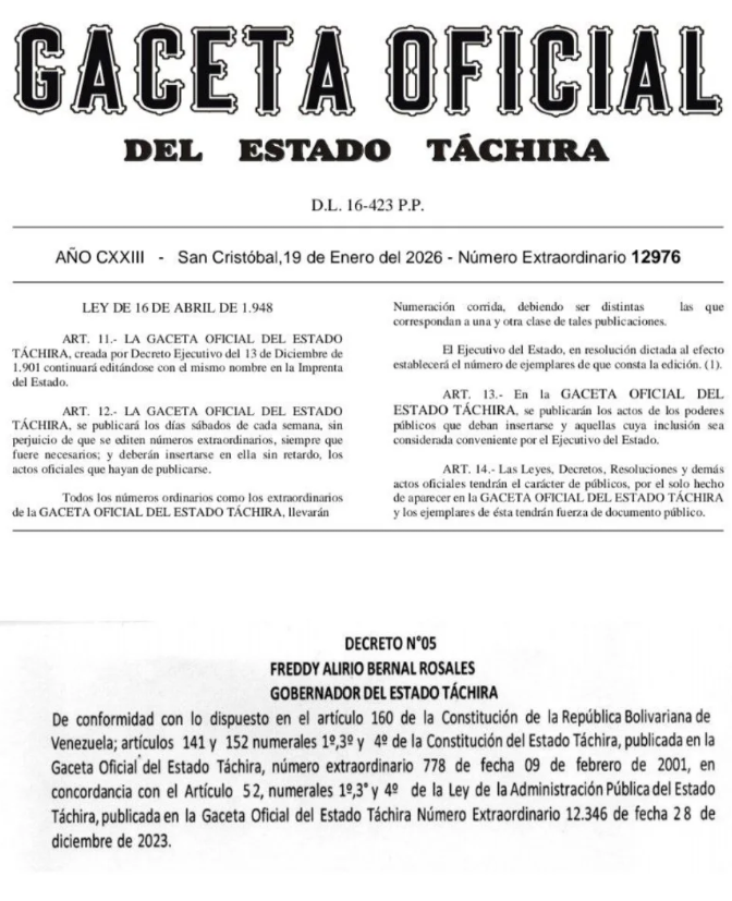 La información fue publicada en las redes sociales de la Gobernación del estado Táchira.