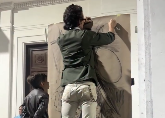 Mientras la música envolvía la noche, Gandica aprovechó este escenario único para demostrar su destreza con el pincel, capturando la esencia de la celebración en tiempo real.