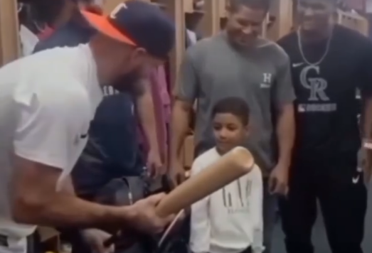 Le regalaron un bate al niño con el nombre de Caribes de Anzoátegui y le agradeció por el apoyo al equipo que estará disputando la gran final de la Liga.