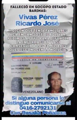 Se requiere con urgencia localizar a los familiares de un señor fallecido en Socopó, estado Barinas, cuyos parientes residen en San José de Bolívar (Táchira).