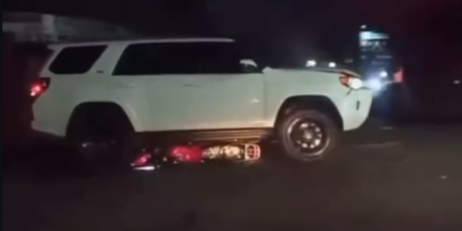 El siniestro involucró a una camioneta blanca y una moto que, según lo que se aprecia en el video, circulaba en sentido contrario.