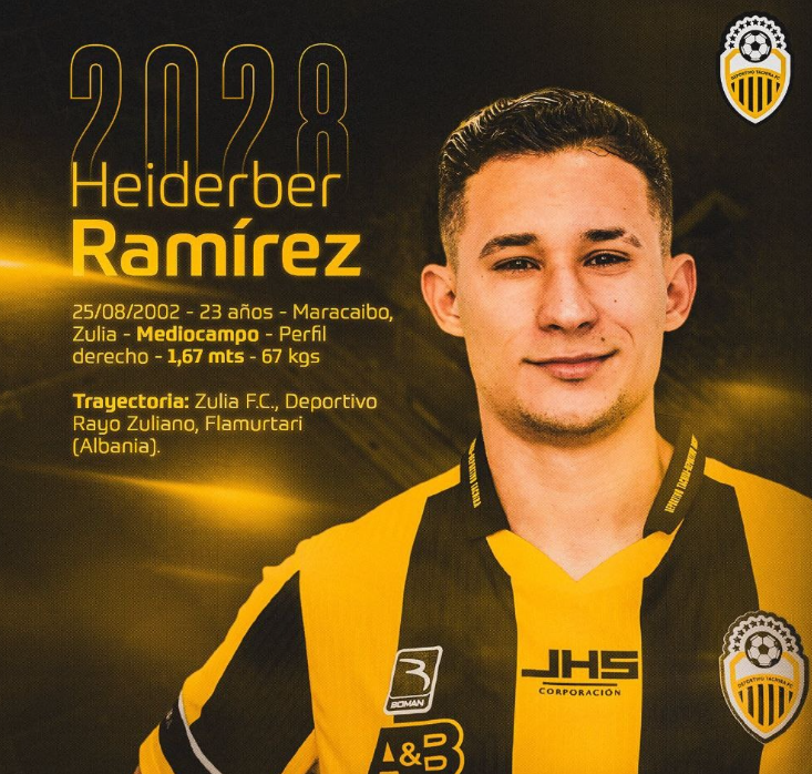 El Deportivo Táchira anuncia oficialmente a Heiderber Ramírez hasta diciembre 2028.