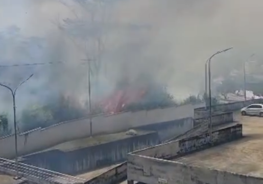 Un incendio de vegetación se ha intensificado en un terreno junto al conjunto residencial Serranía en la avenida Rotaria.