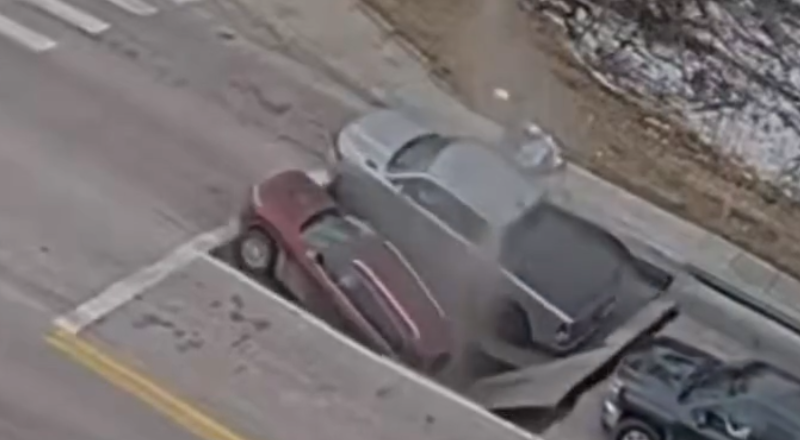 Dos automóviles cayeron en un sumidero formado por el colapso repentino del pavimento en una intersección de Omaha, Nebraska, mientras sus conductores esperaban detenidos en un semáforo.