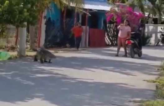 En el video viral, el reptil —de tamaño considerable— recorre la vía pública sin mostrar agresividad, e incluso ingresa brevemente a una vivienda antes de regresar por su cuenta hacia la zona de manglares, su hábitat natural.