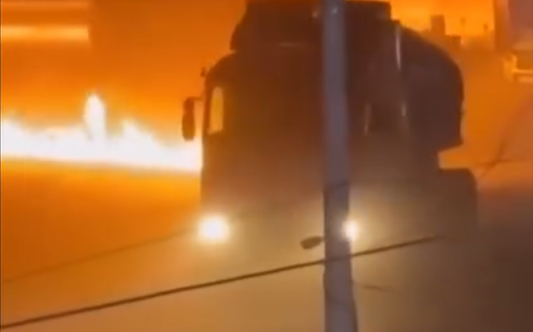 CAMIÓN EN LLAMAS DEJA RASTRO DE FUEGO EN CALLES DEL NORESTE DE SIRIA
