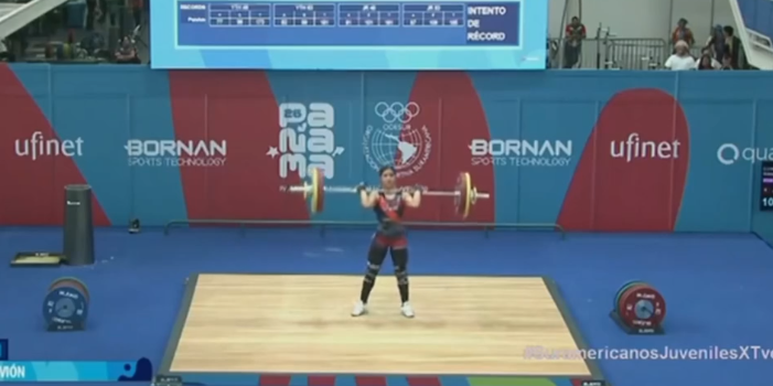 En la categoría de los 53 kilogramos la criolla no creyó en la presión e hizo un levantamiento perfecto con 103 kilogramos y de esta forma gana.