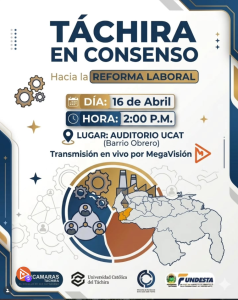 Este jueves 16 de abril, la Universidad Católica del Táchira (UCAT) será sede del foro «Táchira en Consenso, hacia la Reforma Laboral. Yensy Meneses, representante…